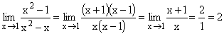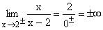 | Bei Einsetzen von 2 ergibt sich zunächst der unklare Grenzwert 0/0 . Leitet man Zähler und Nenner je für sich einmal ab, dann kommt der klare Grenzwert 2/3 heraus.